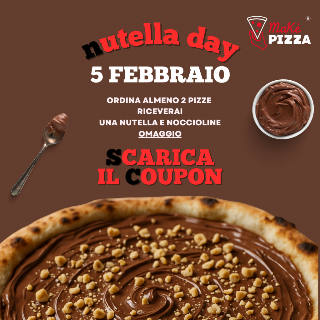 Da Makè Pizza si festeggia con gusto! Con un ORDINE MINIMO DI ALTRE 2 PIZZE, ti rEgaliamo una Pizza NUTELLA E NOCCIOLINE GRATIS 🔥